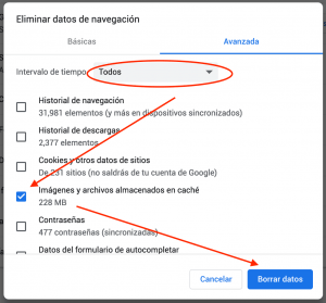 Se te abrirá un cuadro de diálogo del navegador y te preguntará qué es lo que querés borrar.